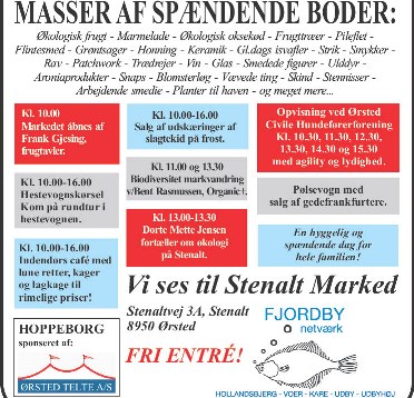 Kl. 13.00 vil Dorte Mette Jensen fortælle om økologi på Stenalt.rked åbnes af frugtavler Frank Gjesing.