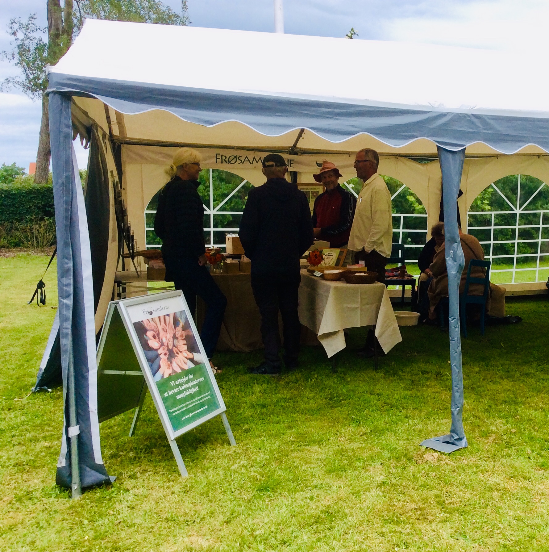 - Flet et pilestativ til stangbønnerne, købt i Frøsamlernes markedsstand i haven, mens der såes og plantes i køkkenhave og mark.